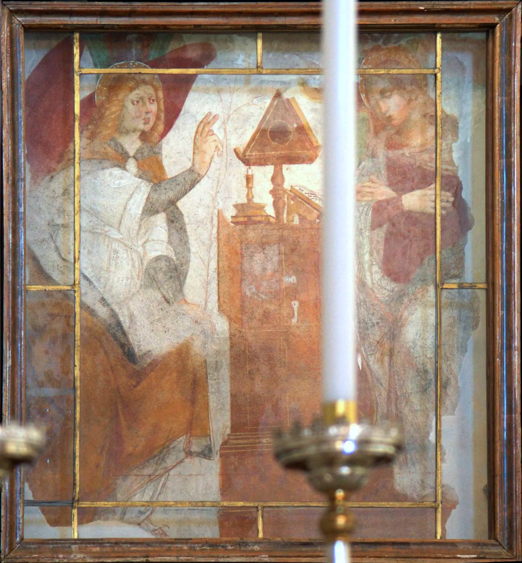 - Baceno. San Gaudenzio. Pilastro navata di destra: Madonna con Bambino. La basilica è aperta tutti i giorni 9-18.