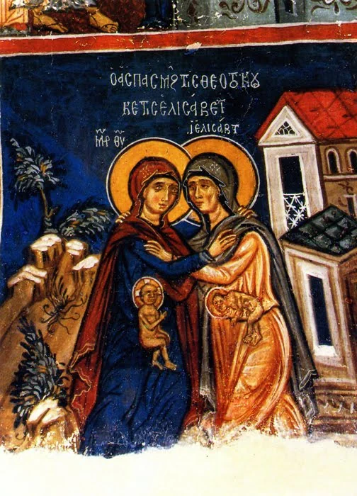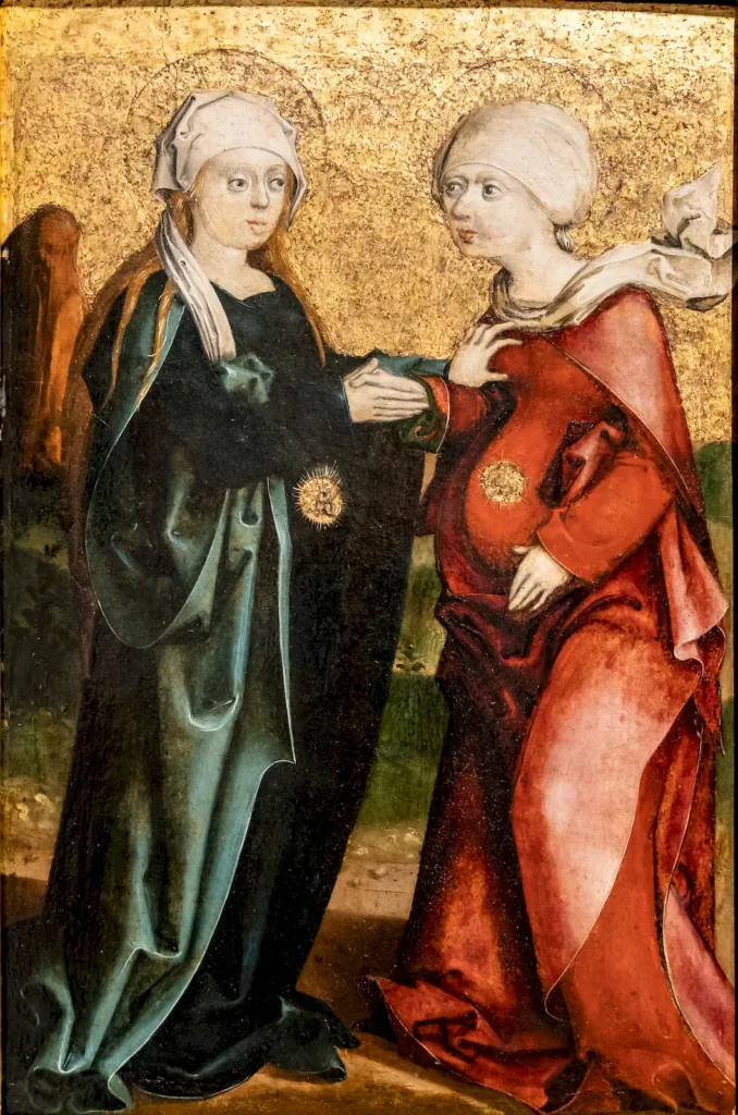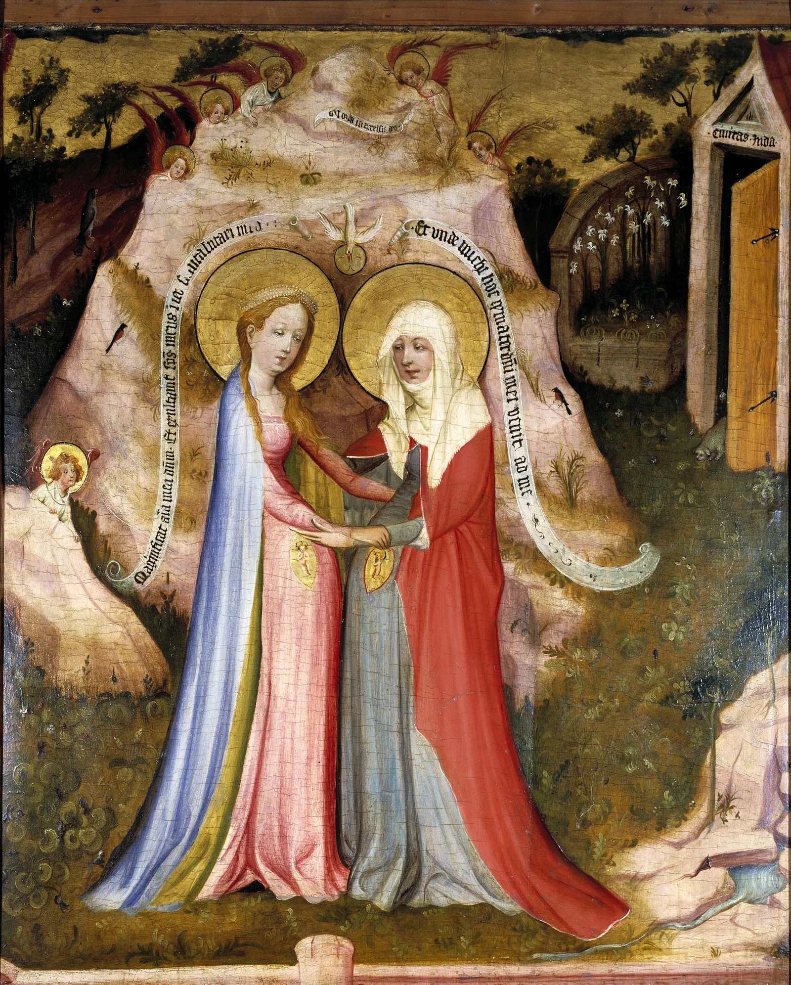 Leonardo prese evidentemente spunto dalla commissione per dare forma ad una sua personalissima reinvenzione della scena mistica, sulla quale doveva aver ragionato da tempo. Nel quadro, ed è forse un unico nell’iconografia pittorica rinascimentale, Maria non tiene in braccio il suo bimbo ma abbraccia il Giovannino. Come mamma che ai giardini dice al suo piccolo – aspetta un po’ qui sull’erba, che lui piange. Maria madre di tutti bimbi, Maria, che appena avuta la notizia, non esita ad accorrere in sostegno di Elisabetta, di lei più anziana, e prestare cura e soccorso.